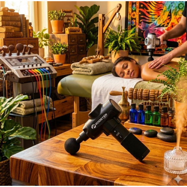 Удосконалений багатофункціональний 30-швидкісний вібраційний ударний масажер Boostex PRO MAX – найновіша розробка в області масажу, допоможе зробити ваше тіло здоровішим, стрункішим і допоможе розслабитися. Масажний пістолет Boostex PRO MAX використовується для полегшення м'язової жорсткості та хворобливості, сприяє циркуляції крові та лімфи. Підходить як для особистого користування, так і спортсменів. Масажер чудово впорається з відновленням після тренування та фізичних травм, також підійде для фізичної терапії, 21 змінна масажна головка, що йдуть у комплекті, дозволяють промасувати та розслабити різні ділянки тіла. Використовуючи вібруючі пульсації та перкусію, масажний пістолет допоможе: